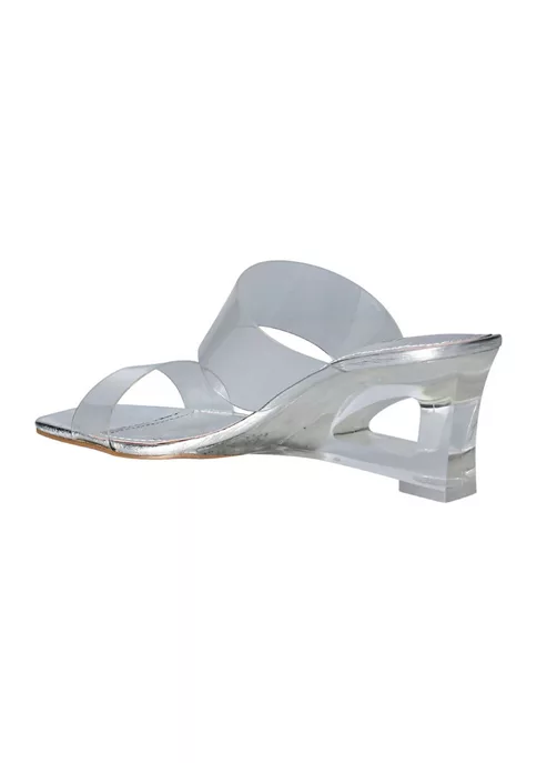 This spring women’s vinyl square toe sandal has a memory foam+latex insole and synthetic lining. This slip-on shoe is on a 2.25-inch heel.