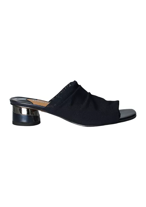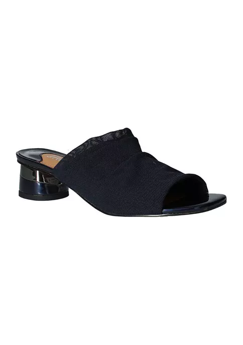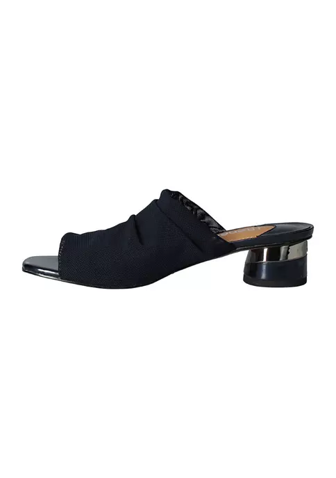 This spring women’s stretch fabric square toe sandal has a memory foam+latex insole and synthetic lining. This slip on shoe is on a 1.5 inch heel.