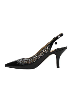 Sitting on a low-profile chunky heel, these J Reneé sandals boast feminine appeal with a stretch mesh upper.