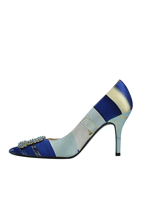 Radiate sophistication with this trend-right stiletto with buckle-inspired rhinestone ornament. Crafted with modern trilogy fabric, the Bilboa pump can be styled easily with dark denim and an elegant top or your favorite summer dress. This eye-catching pair features a memory foam insole for added cushion and comfort. Make a style statement for any occasion with J. Renee.