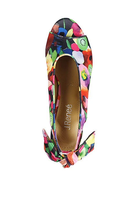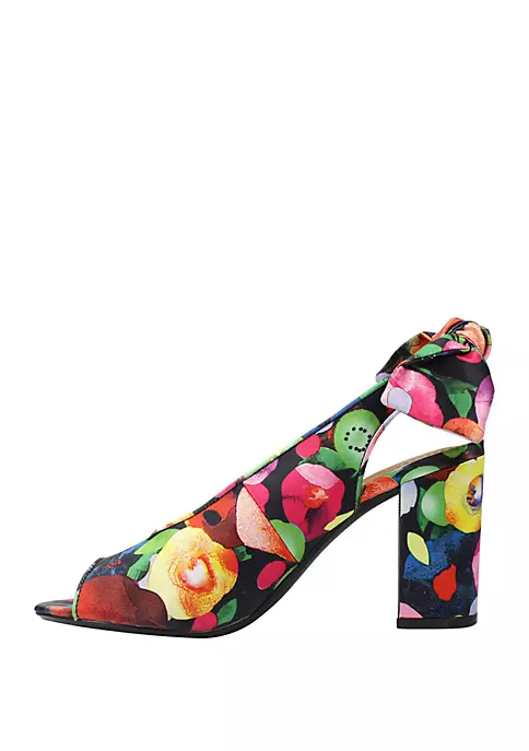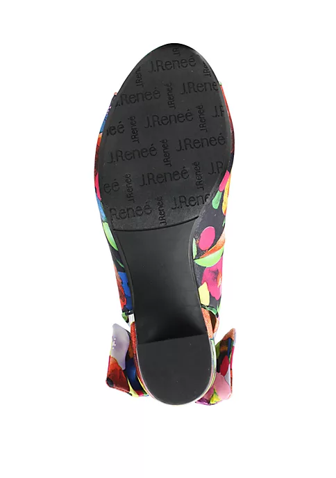 Detailed by a knotted bow, these on-trend, block heel sandals by J Reneé are wrapped in a fun, floral print fabric to spice up your basics.
