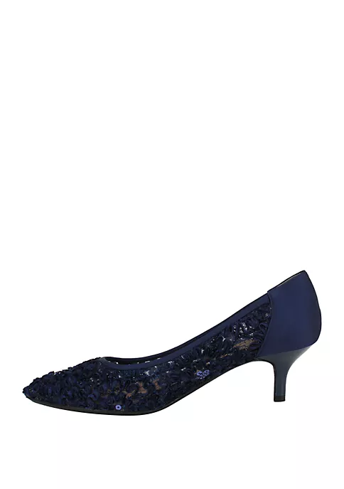 These ribbon lace and satin-wrapped pumps by J Reneé feature an easy heel height for all-day or night style.