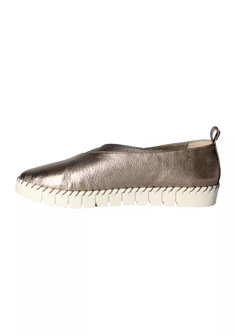 These fabric slip-on sneakers from J Reneé have a fabric lining and synthetic sole on a 1-inch heel. This style also features a round shaped closed toe with an elastic closure.