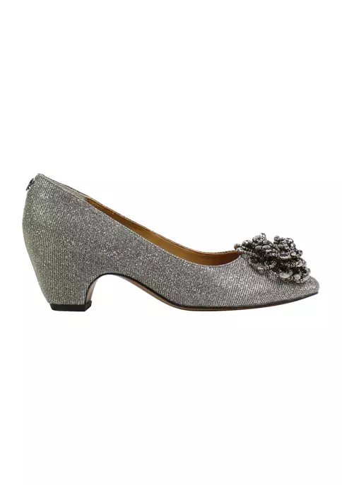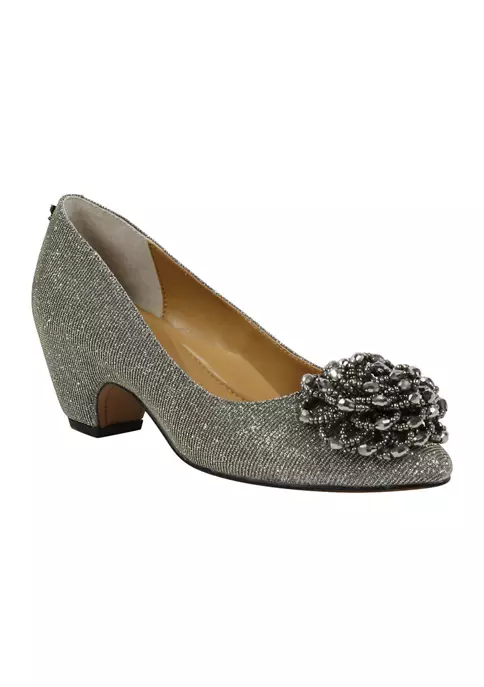 This modernized classic low heel pump is fully wrapped in beautiful glitter or Shantung fabric with beaded floral ornament topper. This pair is clean, sophisticated, and versatile enough for day to night. The Deyanne features a memory foam insole for added cushion and comfort. Make a style statement for any occasion with J. Renee’.
