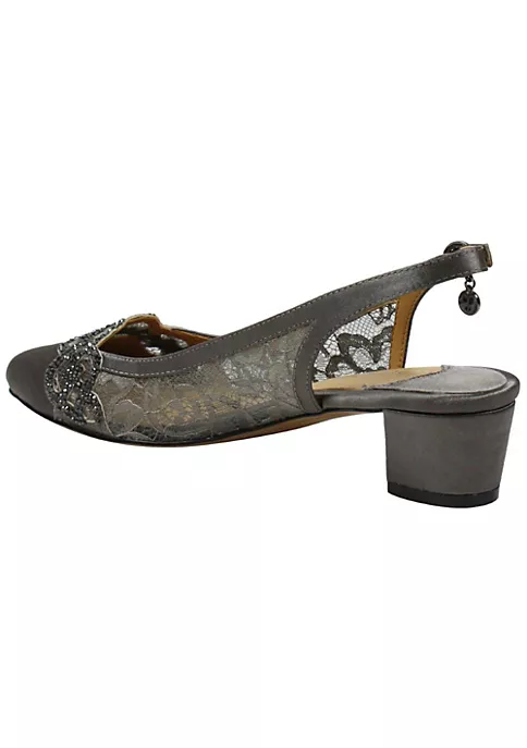This fall women’s lace/satin square toe pump has a memory foam insole and synthetic lining. This style also features a buckle closure on a 1.5 inch heel.