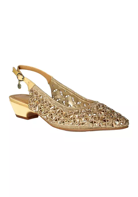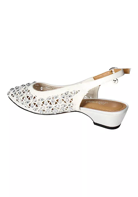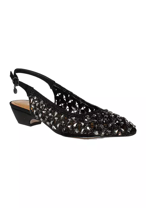 This fall women’s satin/rhinestones almond toe pump has a memory foam+latex insole and synthetic lining. This style also features a buckle closure on a 1.25 inch heel.