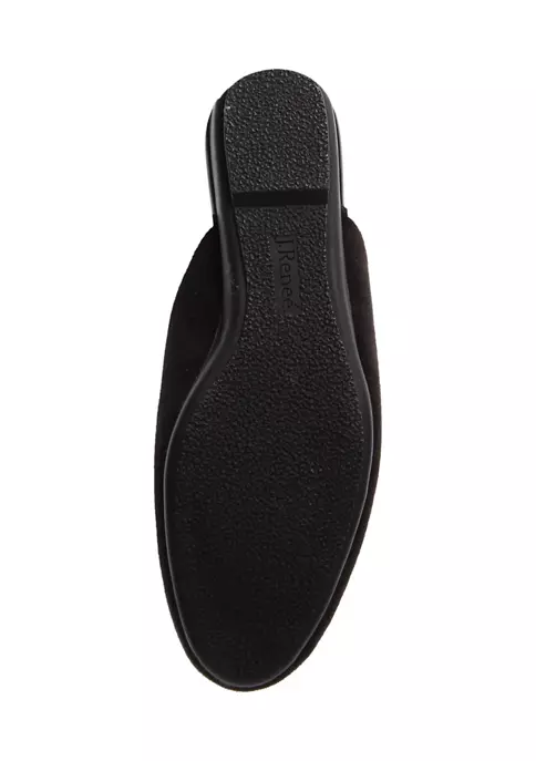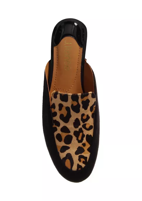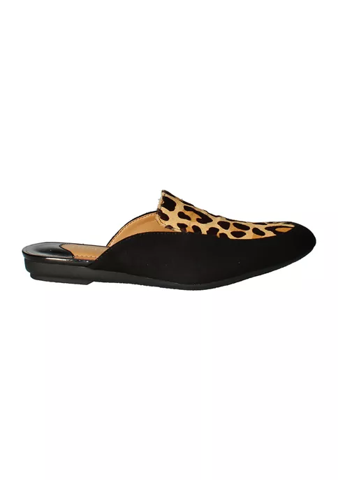 These flats from J Reneé are made of hair-on animal/suede with a synthetic lining and synthetic sole on a 0.5-inch heel. They also feature a round-shaped closed toe.