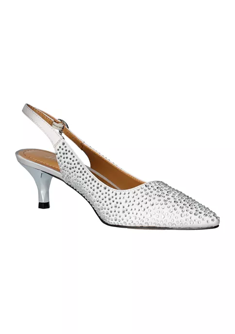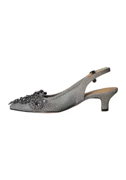 This intricate rhinestone mesh and satin fabric wrapped taper toe pump is your perfect special occasion update. It’s ideal for day to night, for a business dinner to a formal affair. The Kenitra features a memory foam insole for added cushion and comfort. Make a style statement for any occasion with J. Renee’.