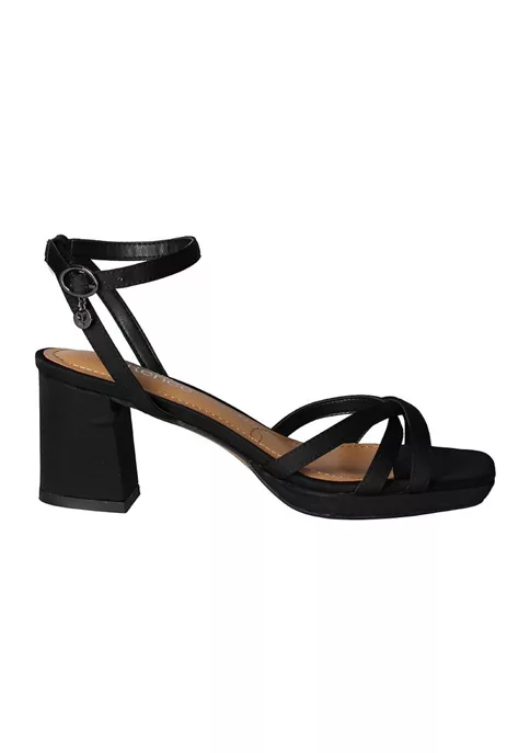 This spring women’s fabric square toe sandal has a memory foam+latex insole and synthetic lining. This style also features a buckle closure on a 2.25 inch heel.