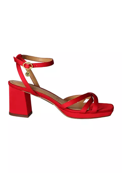 This spring women’s fabric square toe sandal has a memory foam+latex insole and synthetic lining. This style also features a buckle closure on a 2.25 inch heel.