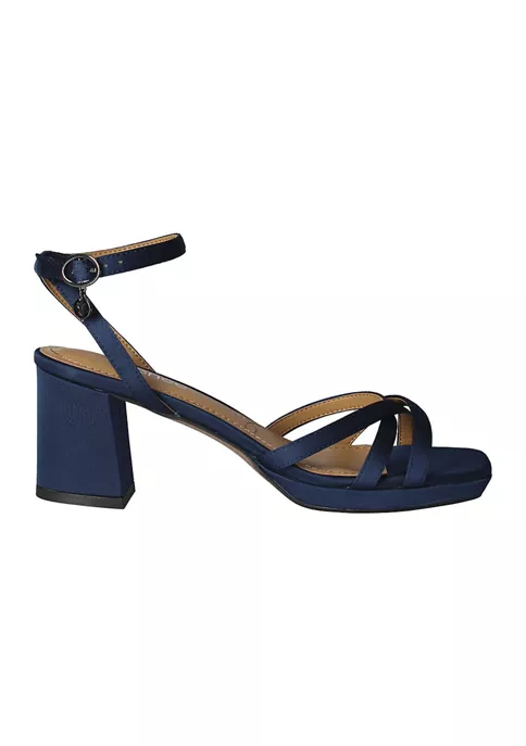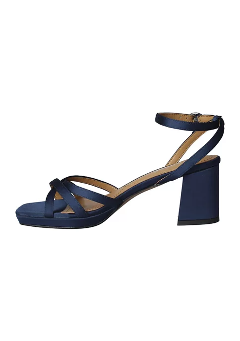 This spring women’s fabric square toe sandal has a memory foam+latex insole and synthetic lining. This style also features a buckle closure on a 2.25 inch heel.