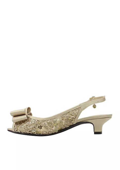 The Landan is an essentially flirty open toe sandal wrapped in beautiful ribbon lace and finished with a pretty satin bow. This day-to-night heel features a memory foam insole for added cushion and comfort and an adjustable sling for easy wear. Make a style statement for any occasion with J. Renee
