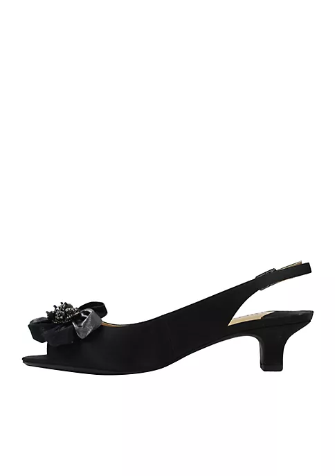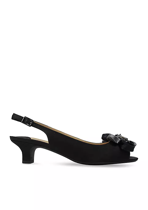 Find the perfect blend of style and elegance in these gorgeous slingbacks, crafted in crepe satin and mesh with a beaded two-tone ornament embellishment. The Leonelle features a memory foam insole for added cushion and comfort, and an adjustable buckle sling to ensure a secure fit.