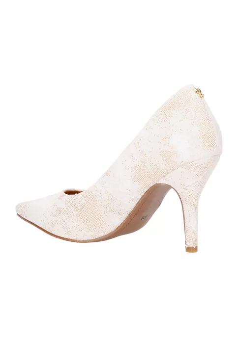 Pointed and peaked, these pumps from J Reneé are enhanced with elegant scroll details.